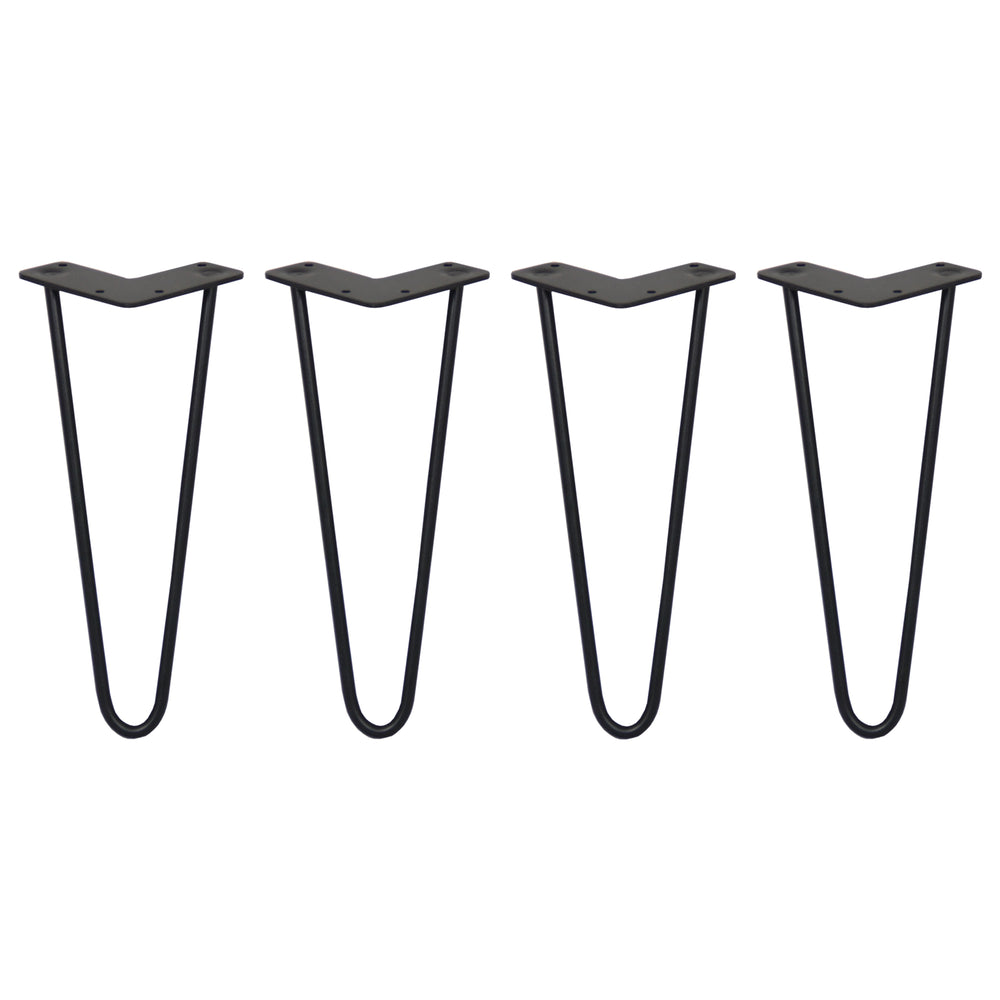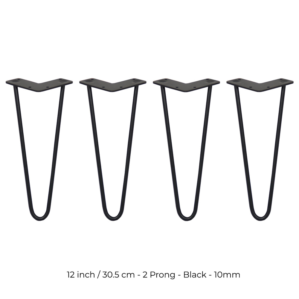 4 x 12" Hairpin Legs - 2 Prong - 10mm - Black