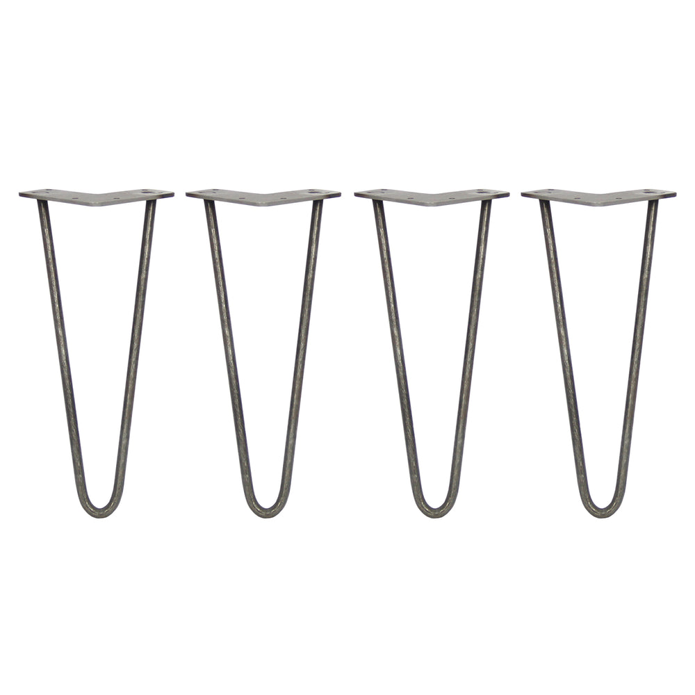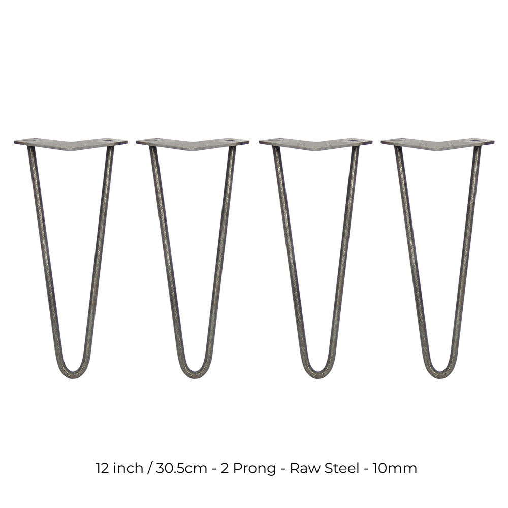 4 x 12" Hairpin Legs - 2 Prong - 10mm - Raw Steel