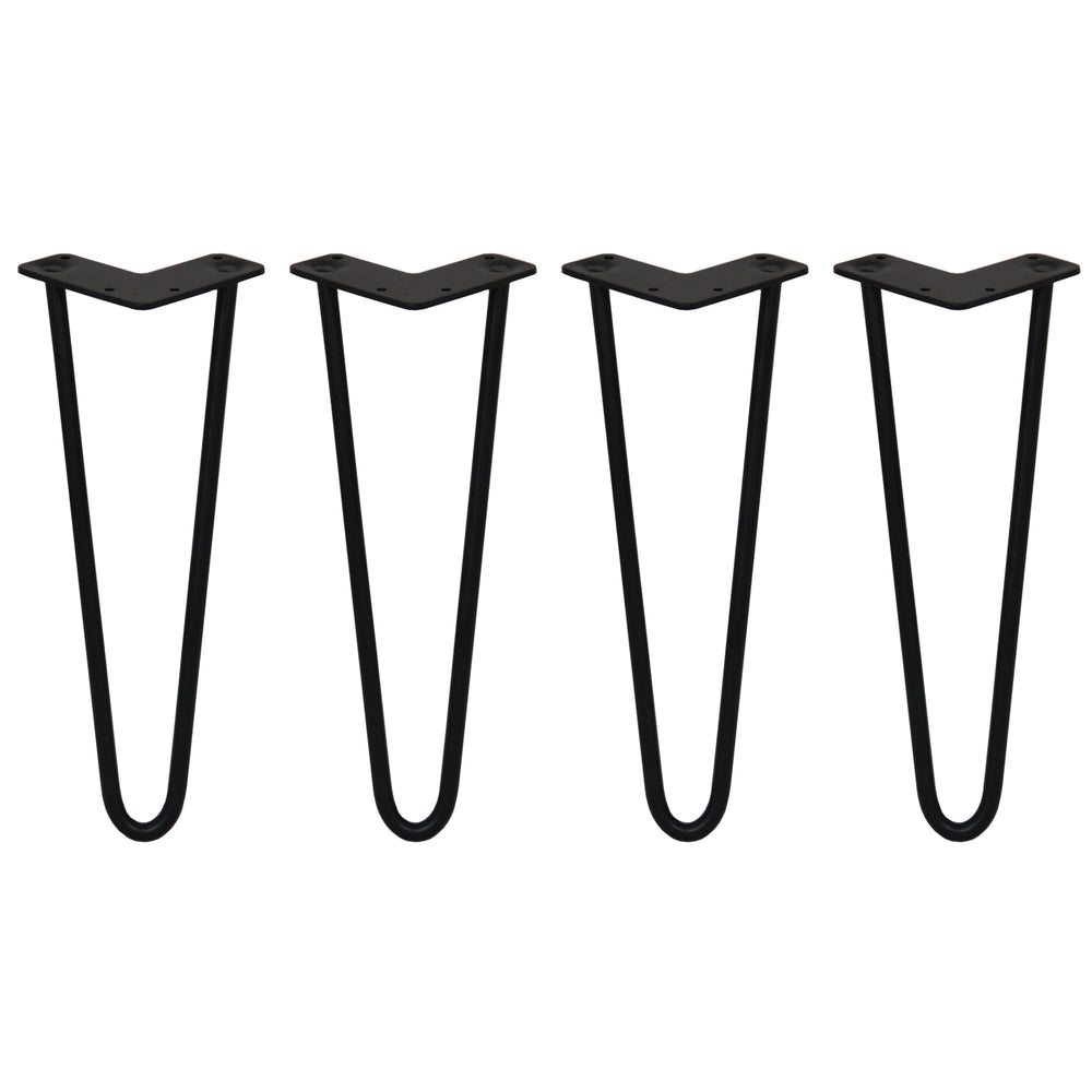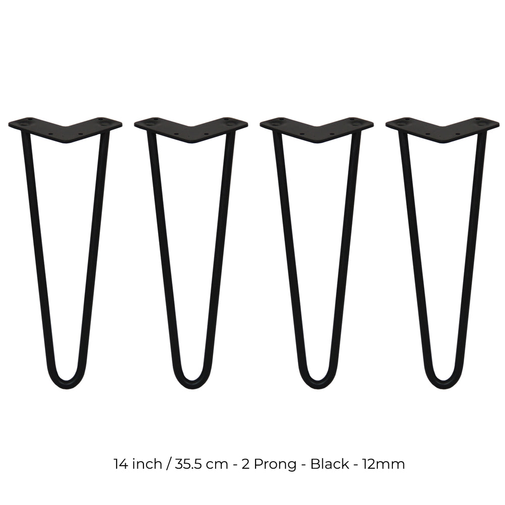 4 x 14" Hairpin Legs - 2 Prong - 12mm - Black