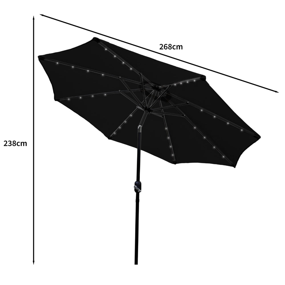 Get summer ready with this beautiful LED tilt parasol. Stylish and practical, this is a stunning addition to your garden whilst providing excellent UV protection with high quality 160g polyester. Combining traditional workmanship with modern aesthetics, this black parasol will perfectly compliment your surroundings.