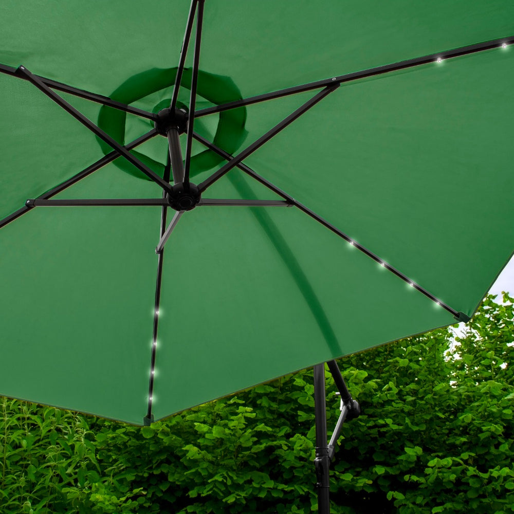 Get summer ready with this beautiful LED cantilever parasol. Stylish and practical, this is a stunning addition to your garden whilst providing excellent UV protection with high quality 160g polyester. Combining traditional workmanship with modern aesthetics, this green parasol will perfectly compliment your surroundings.