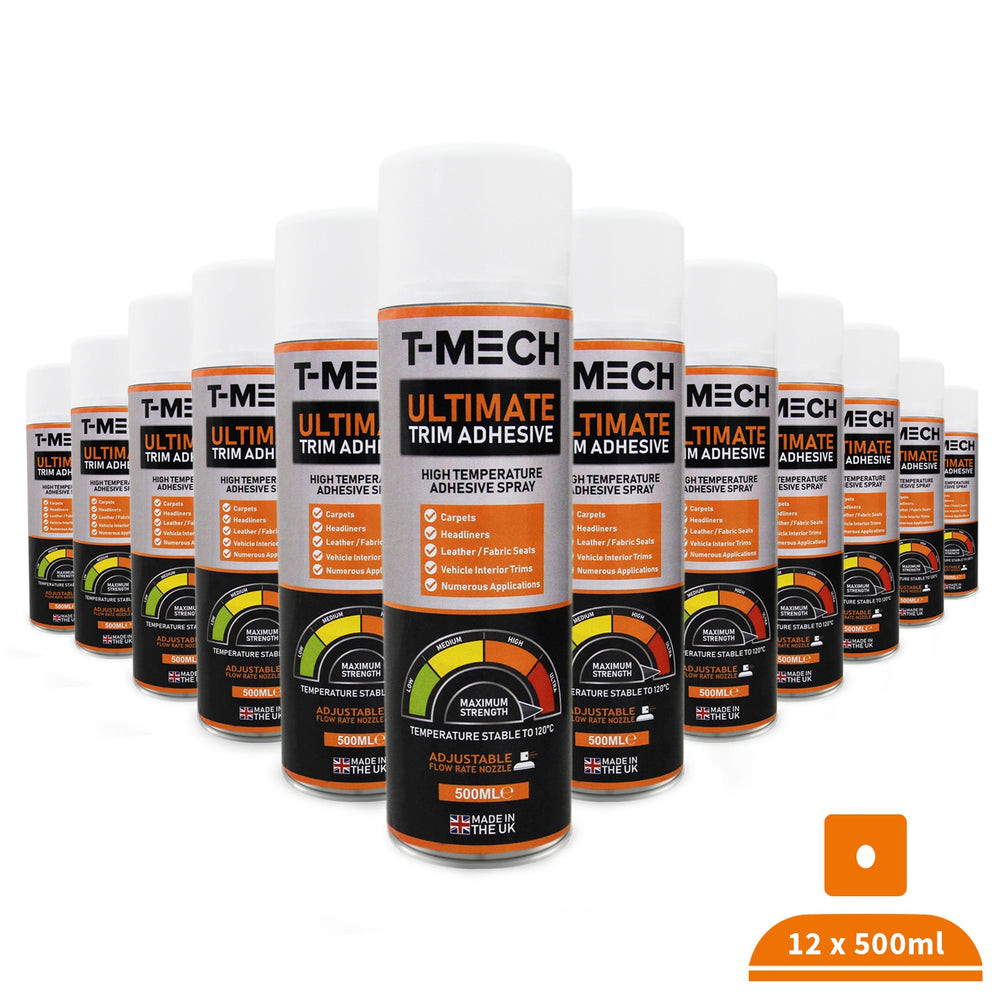 - T-Mech 12 x 500ml heavy duty ultimate trim adhesive with an amazing high temperature resistance of 120°.