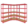 - Strong storage shelves with five shelves per bay